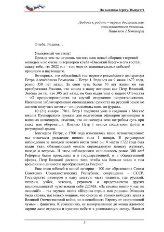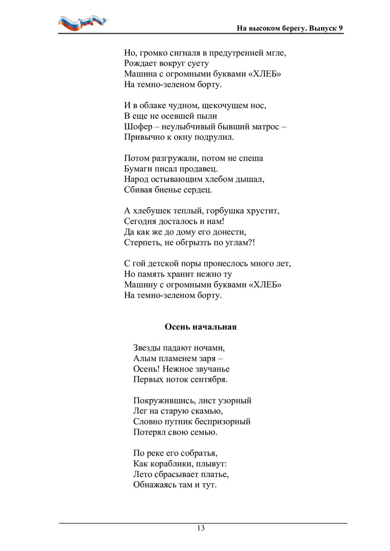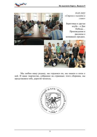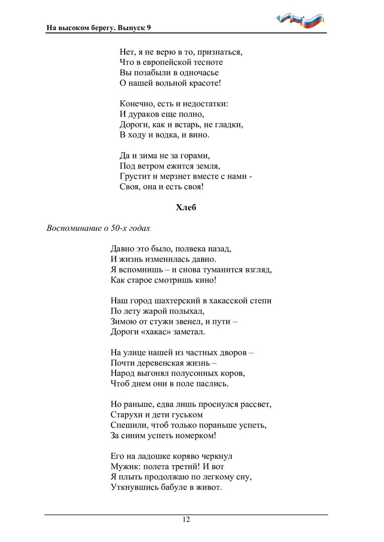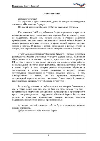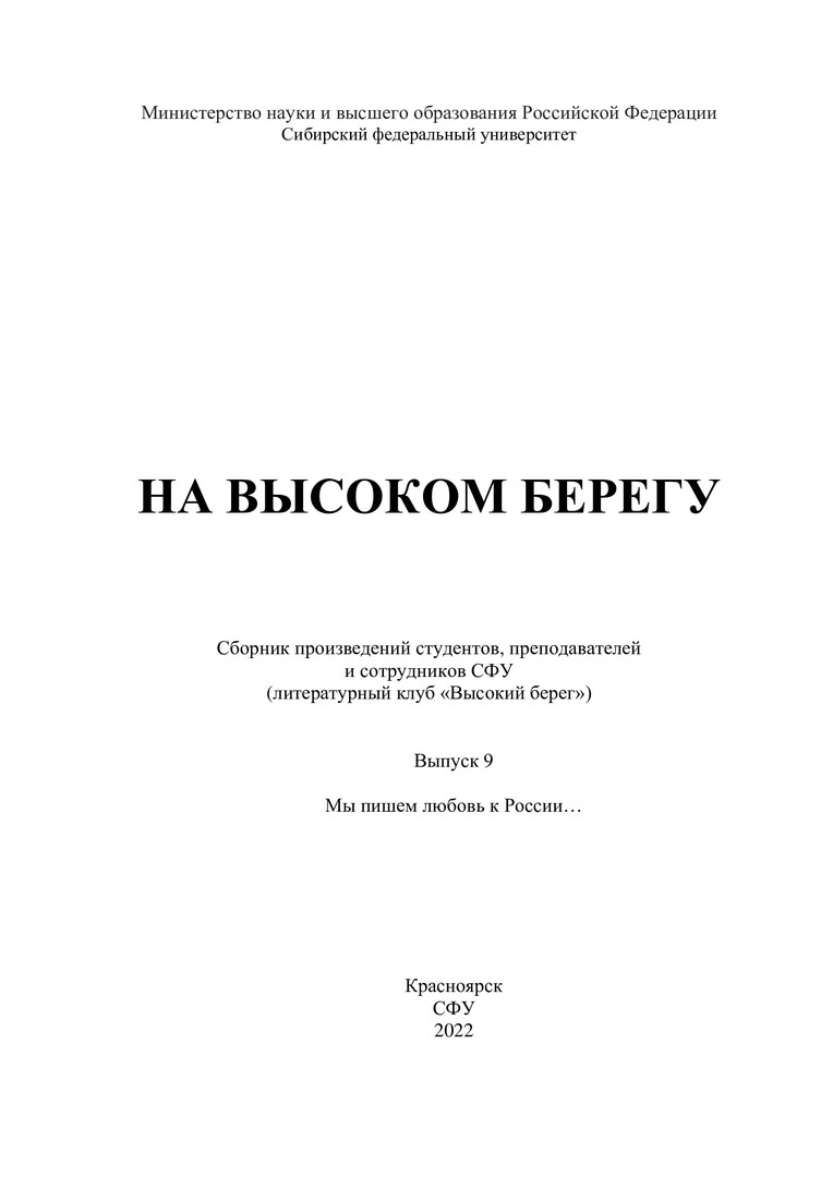 На высоком берегу : сборник произведений студентов, преподавателей и сотрудников СФУ (литературный клуб "Высокий Берег"). Вып. 9. Мы пишем любовь к России...