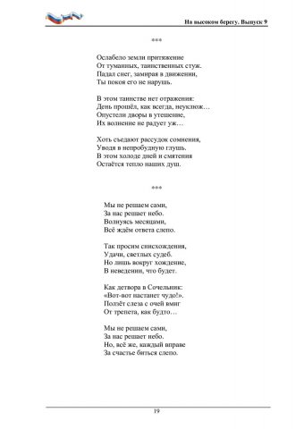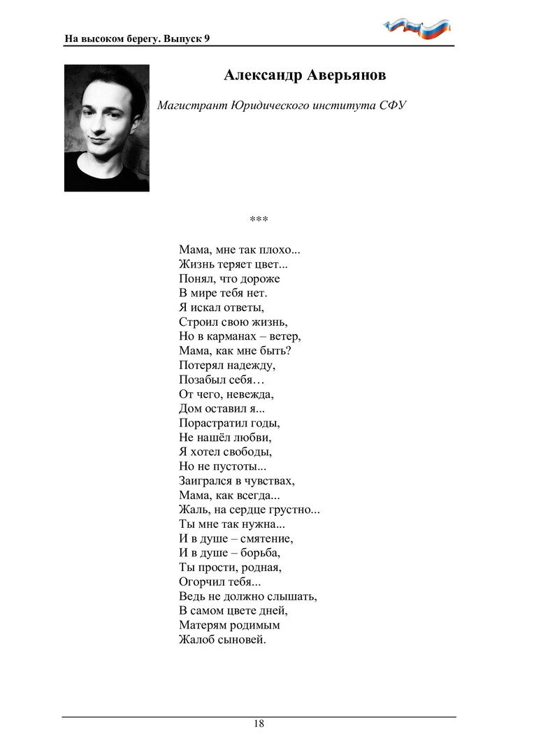 Ключевые слова:Красноярский край, художественные произведения писателей Красноярья, поэзия, тексты, отечественная, поэзия Красноярья, лирическая поэзия, проза красноярских авторов, литературное творчество сотрудников СФУ