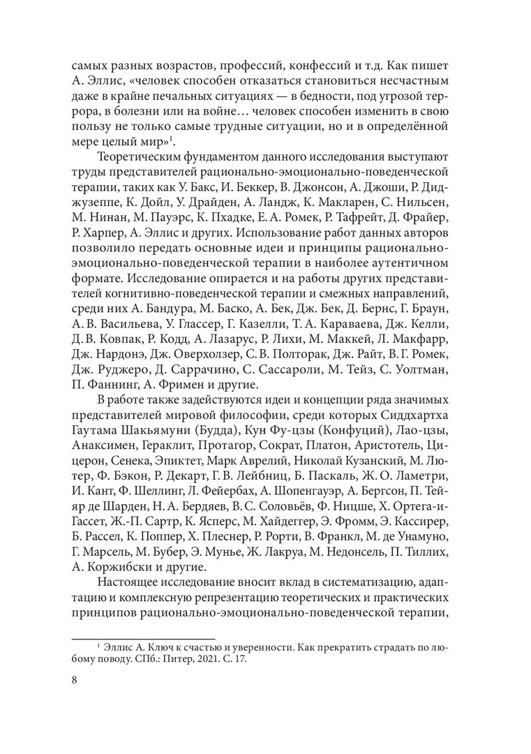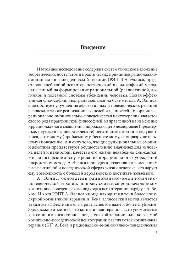 Аннотация:Представлены фундаментальные основоположения рационально-эмоционально-поведенческой терапии как практического инструмента для формирования эффективной философии жизни, способствующей улучшению аффективных и поведенческих реакций человека, а также реализации его целей и ценностей. Раскрыта специфика основных дисфункциональных установок — долженствования, катастрофизации, низкой толерантности к фрустрации и обесценивания. Предназначена для специалистов в области философии, психологии, социологии, конфликтологии, педагогики и всех интересующихся вопросами практической философии и психотерапии.