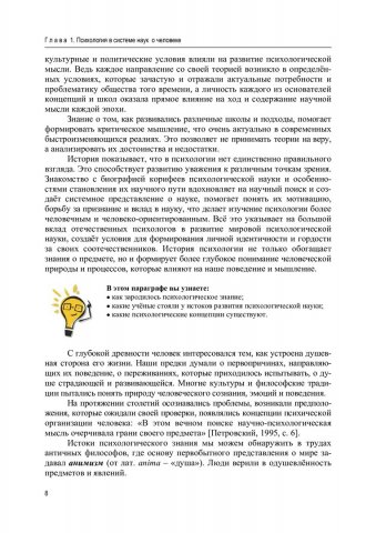 Аннотация: Обобщены материалы по истории становления психологической науки, рассмотрены ключевые и актуальные вопросы психологии, значимые в контексте психологического просвещения современной студенческой молодежи: место психологии в системе наук о человеке, основы психологии развития личности, человек в системе социальных отношений, вопросы профессионального становления личности. Предназначено для студентов, обучающихся по непрофильным (непсихологическим) направлениям подготовки.