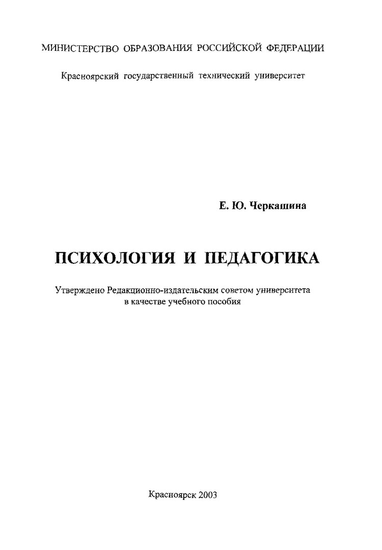 Библиографическое описание: Черкашина, Елена Юрьевна. Психология и педагогика : учеб. пособие / Е. Ю. Черкашина ; Краснояр. гос. техн. ун-т. - Красноярск : ИПЦ КГТУ, 2003. - 180 с. - (Система открытого образования). - Библиогр. в конце разд. - ISBN 5-7636-0575-6. - Текст : непосредственный + Текст : электронный. Скопировать