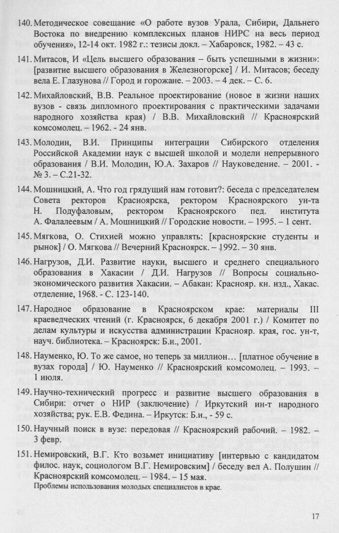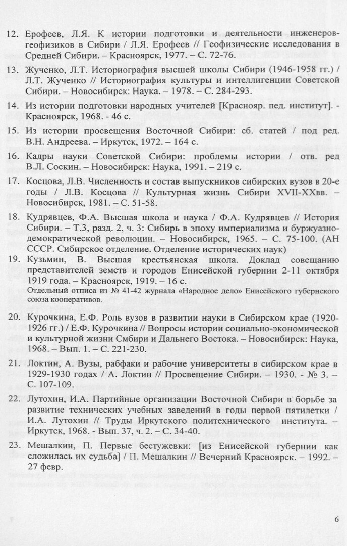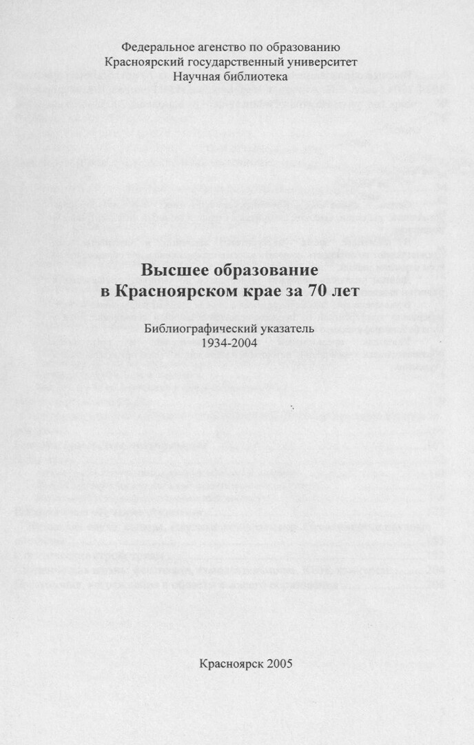 Высшее образование в Красноярском крае за 70 лет : библиографический указатель 1934-2004 гг.библиография