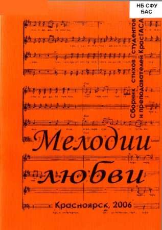 Библиографическое описание:Мелодии любви : сборник стихов преподавателей и сотрудников КрасГАСА / редкол.: Т. В. Гавриленко, М. А. Бриткова, Л. И. Клименко, И. А. Цветочкина . - Красноярск : КрасГАСА, 2006. - 73 с. - 100 экз. - 24.00 р.