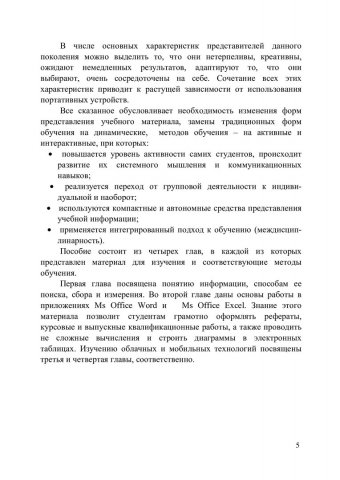 Аннотация:В пособии описаны методические подходы к обучению информатике в условиях цифрофизации общества и образования. Раскрыта сущность и особенность современных средств информационных и коммуникационных технологий. Особое внимание уделено облачным и мобильным технологиям. Продемонстрированы способы работы в облачном сервисе Google Drive. Описаны возможности on-line-офиса Google Docs . Изложены основные понятия мобильных технологий, дана классификация мобильных устройств и мобильных приложений. Предназначено для преподавателей информатики. Пособие будет полезно всем изучающим информатику и информационно-коммуникационные технологии.