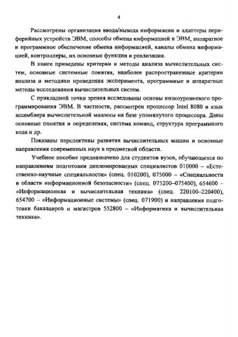 Аннотация: Рассмотрены: архитектура ЭВМ, основные характеристики ЭВМ, области применения ЭВМ различных классов, общая структурная схема ЭВМ, назначение основных блоков схемы, функциональная и структурная организация процессора и системы команд, основные этапы выполнения команд, основные виды представления информации в ЭВМ. Приведены критерии и методы анализа вычислительных систем, основные системные понятия, наиболее распространенные критерии анализа и методики проведения эксперимента, программные и аппаратные методы исследования вычислительных систем. Показаны перспективы развития вычислительных машин и основные направления современных наук в предметной области.
