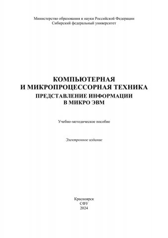 Библиографическое описание:Компьютерная и микропроцессорная техника. Представление информации в микро ЭВМ : учебно-методическое пособие / Сиб. федер. ун-т, Политехн. ин-т ; сост.: В. Б. Молодецкий, А. Н. Пахомов, С. А. Встовский. - Электрон. текстовые дан. (pdf, 0,5 Мб). - Красноярск : СФУ, 2024. - 32 с. - Загл. с титул. экрана. - Изд. № 2024-21971 : Б. ц. - Текст : электронный.