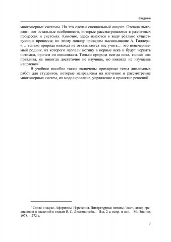 Аннотация: Рассмотрены основные особенности системного анализа, моделирования и управления многомерными системами в условиях недостаточной априорной информации. Изложены теоретические и практические вопросы анализа, синтеза и моделирования многомерных систем. Описаны методы параметрической и непараметрической идентификации. Приведены некоторые численные исследования. Даны примерные темы дипломных работ. Предназначено для студентов, обучающихся по направлениям 27.03.03 «Системный анализ и управление», 09.03.03 «Прикладная информатика», а также для аспирантов и специалистов, изучающих курс «Системный анализ» в прикладном направлении.