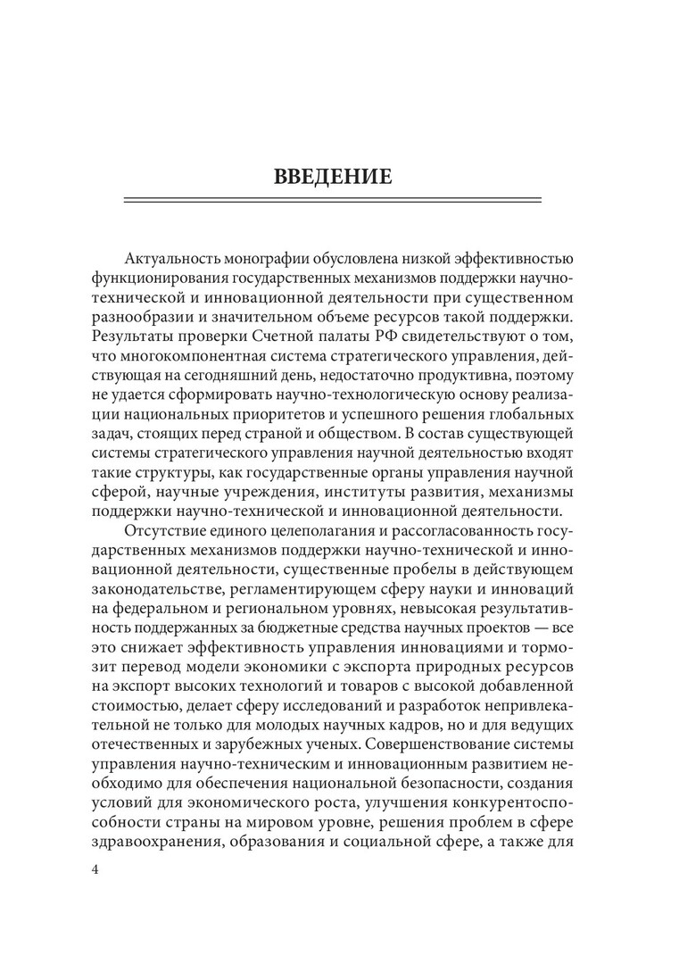 Аннотация: Представлен анализ подходов к оценке эффективности механизмов государственной поддержки научно-технической и инновационной деятельности в регионе, а также моделирование возможностей их трансформации. Новизна монографии заключается в расширении теоретических положений инновационного менеджмента по формированию региональных механизмов государственной поддержки научно-технической и инновационной деятельности как единой системы и создании комплексной модели трансформации региональных механизмов государственной поддержки науки и инноваций на основе матричного подхода. Адресована научным и научно-педагогическим работникам, докторантам, аспирантам, студентам, слушателям программ повышения квалификации, а также руководителям и специалистам органов государственной власти субъектов Российской Федерации.