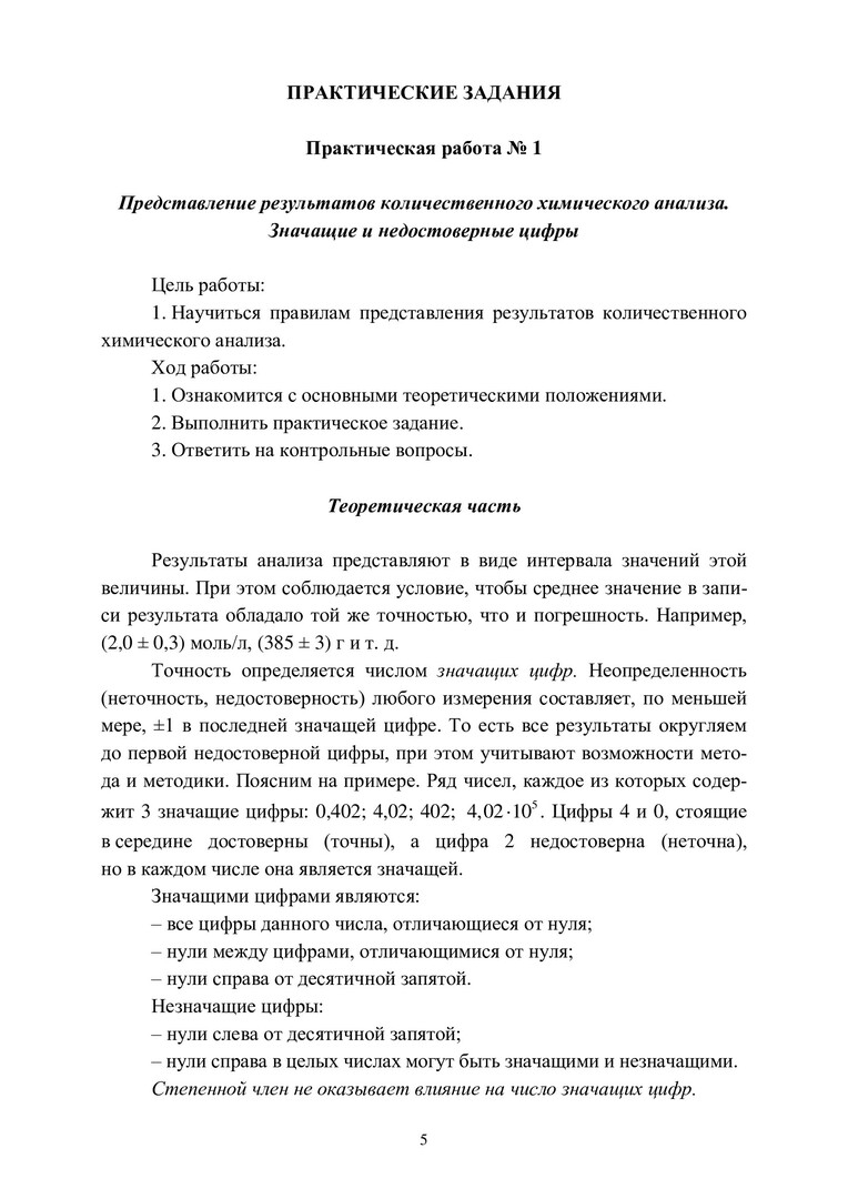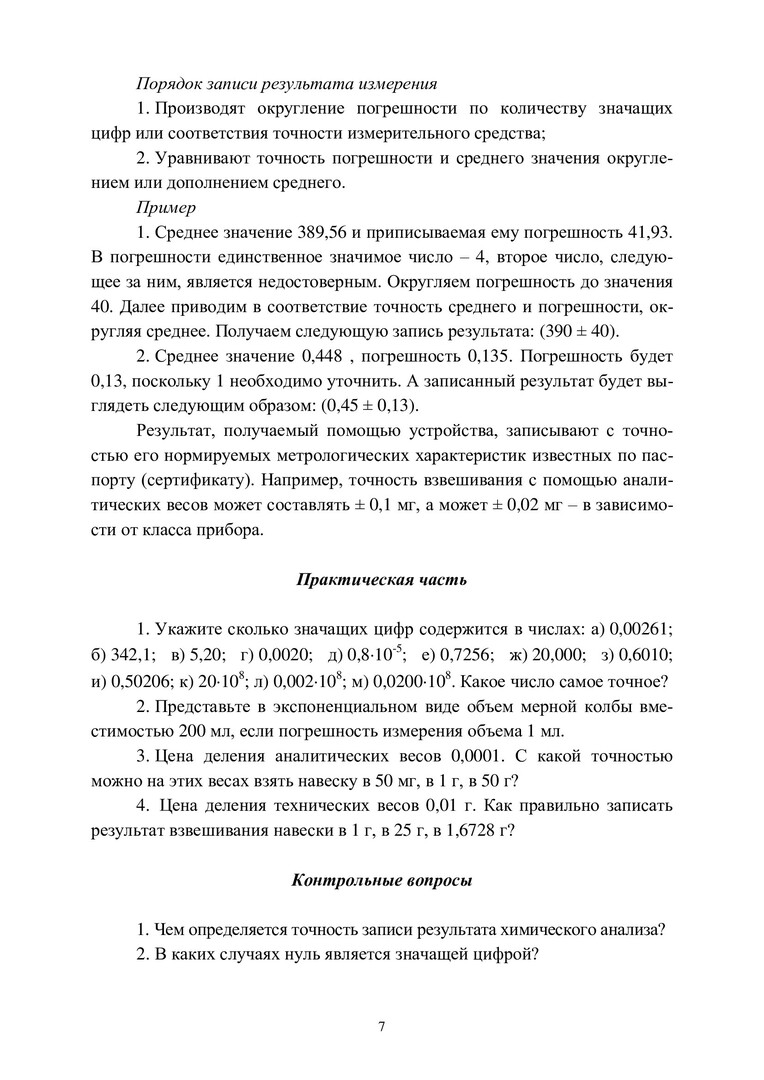 Ключевые слова: метрологические основы измерений, химический анализ вещества, практические работы