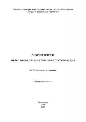 Библиографическое описание: Метрология, стандартизация и сертификация. Рабочая тетрадь : учебно-методическое пособие / Сиб. федер. ун-т, Ин-т нефти и газа ; сост. А. А. Рябинин [и др.]. - Электрон. текстовые дан. (pdf, 1,3 Мб). - Красноярск : СФУ, 2021 (2021-12-20). - 33 с. - Загл. с титул. экрана. - Изд. № 2021-15301 : Б. ц. - Текст : электронный.