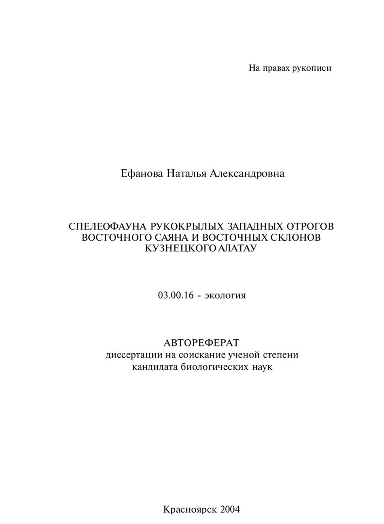 Спелеофауна рукокрылых западных отрогов Восточного Саяна и восточных склонов Кузнецкого Алатау : автореферат диссертации ... кандидата биологических наук