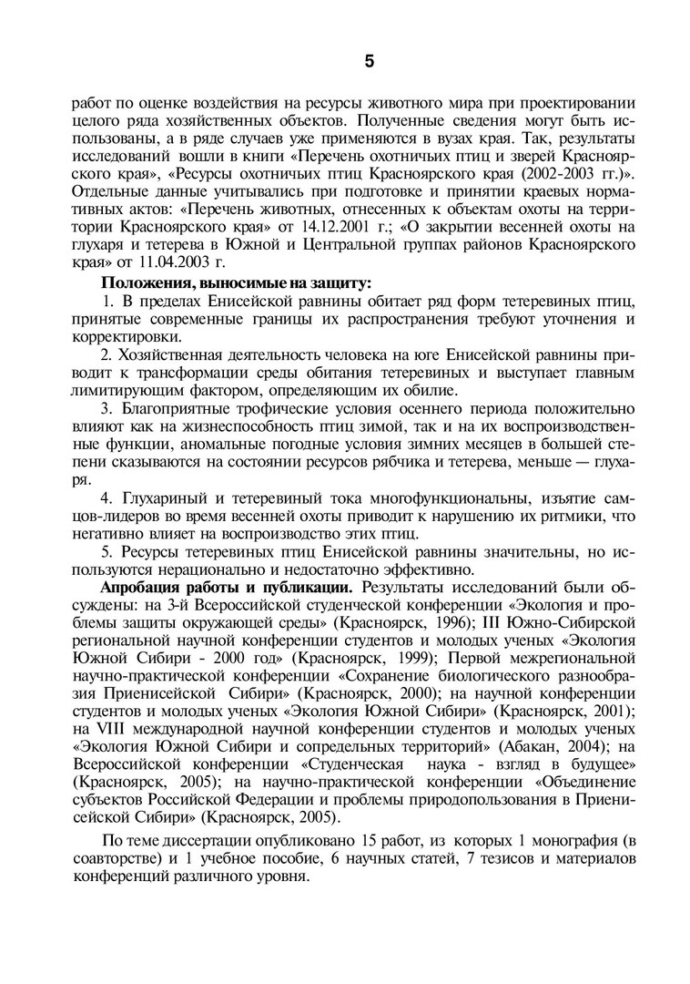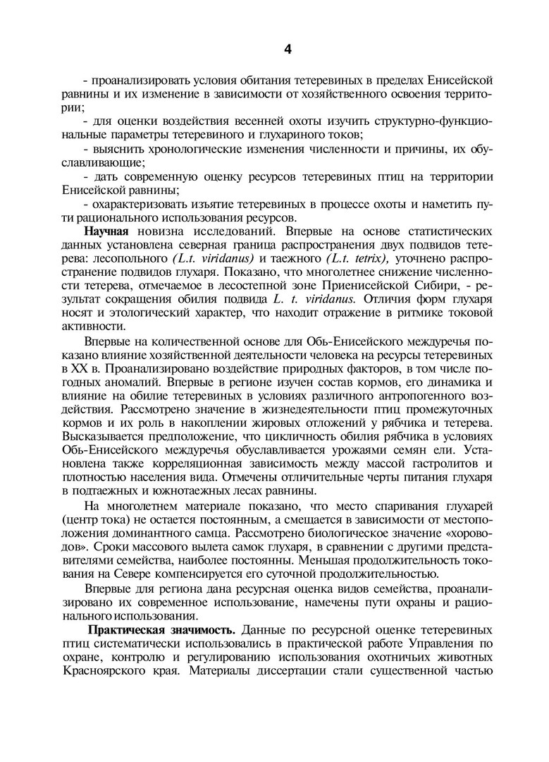 Ресурсы тетеревиных птиц (Tetraonidae) Енисейской равнины и прилежащих территорий: современное состояние и лимитирующие факторы : автореферат диссертации ... кандидата биологических наук