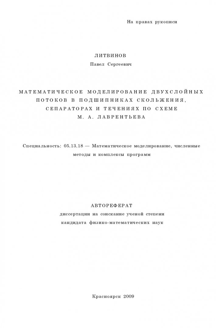 Математическое моделирование двухслойных потоков в подшипниках скольжения, сепараторах и течениях по схеме М. А. Лаврентьева : специальность 05.13.18 "Математическое моделирование, численные методы и комплексы программ"