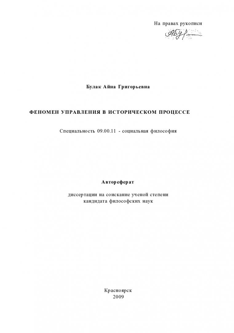 Библиографическое описание:Булак, Анна Григорьевна. Феномен управления в историческом процессе : автореферат диссертации ... кандидата философских наук / А. Г. Булак ; Сибирский федеральный университет [СФУ]. - Красноярск, 2009. - 26 с. - Текст : непосредственный + Текст : электронный. Режим доступа: читальные залы НБ СФУ