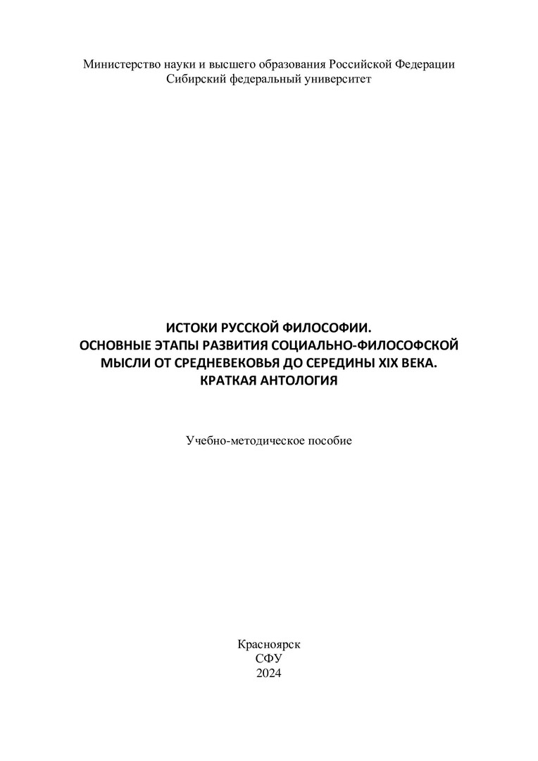 Истоки русской философии. Основные этапы развития социально-философской мысли от средневековья до середины XIX века. Краткая антология : учебно-методическое пособие