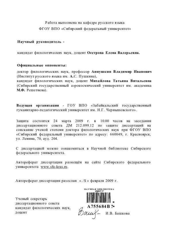 Библиографическое описание:Новикова, Александра Павловна. Русскоязычные интернет-тексты суицидальной тематики: система речевых жанров и параметры языкового воздействия : автореферат диссертации ... кандидата филологических наук / А. П. Новикова ; Сибирский федеральный университет [СФУ]. - Электрон. текстовые дан.(253,59 Кб). - Красноярск, 2009. - 25 с. - Загл. с титул. экрана. - Текст : непосредственный + Текст : электронный. Режим доступа: читальные залы НБ СФУ