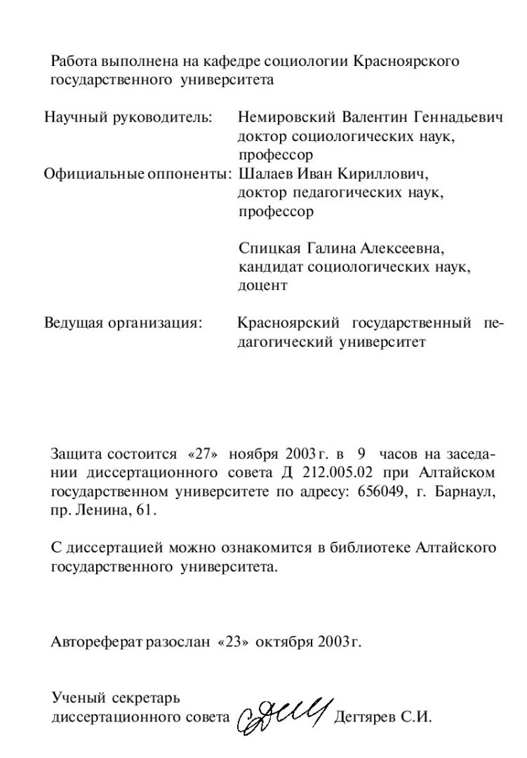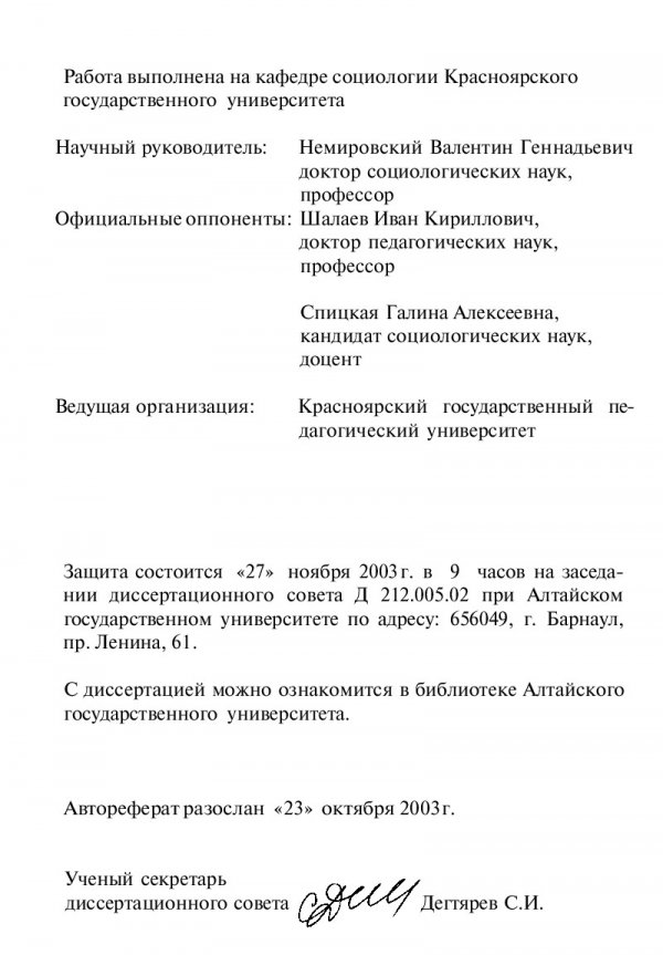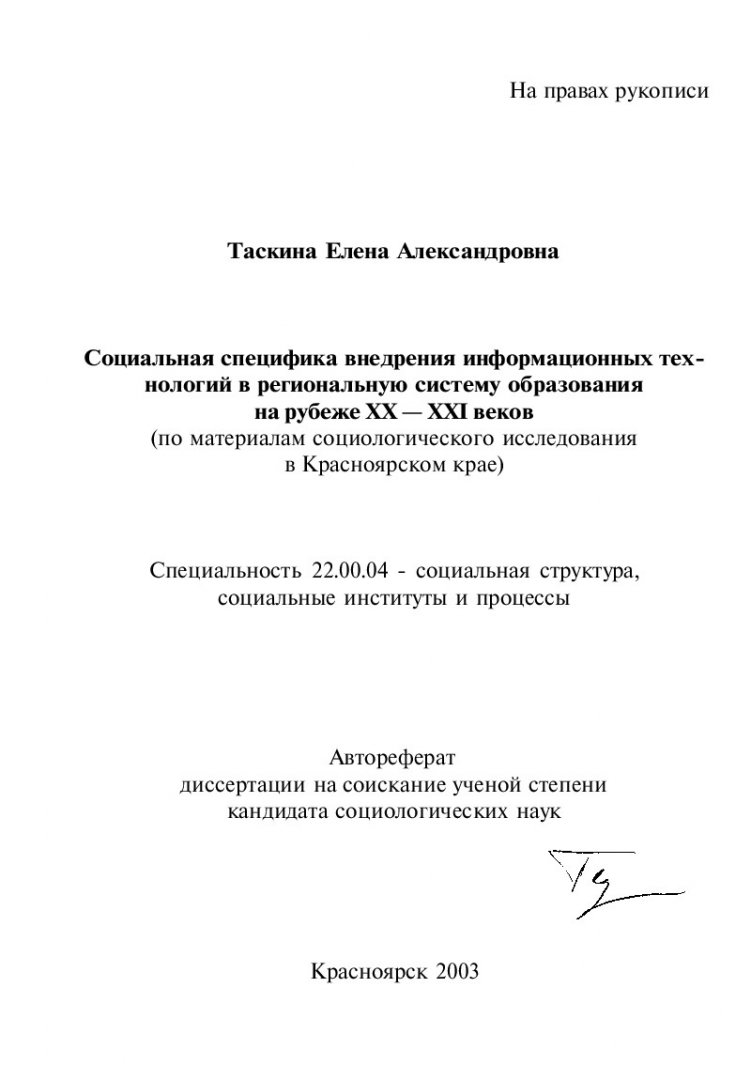 Социальная специфика внедрения информационных технологий в региональную систему образования на рубеже XX - XXI веков (по материалам социологического исследования в Красноярском крае) : автореферат диссертации ... кандидата социологических наук