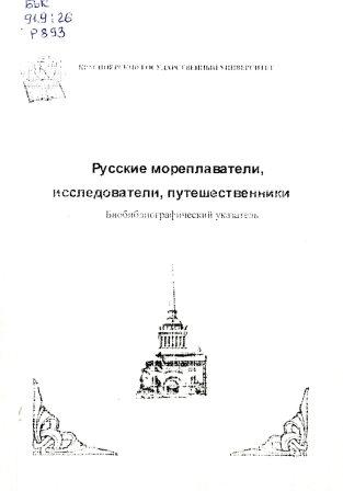 Библиографическое описание:Русские мореплаватели, исследователи, путешественники : библиографический указатель / Красноярский государственный университет, Научная библиотека ; сост.: С. П. Аникина, И. И. Быкова, Е. А. Федорова. - Красноярск : КрасГУ, 2003. - 161 с. - 150 р. - Текст : непосредственный.