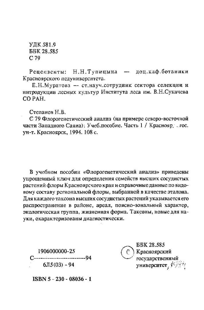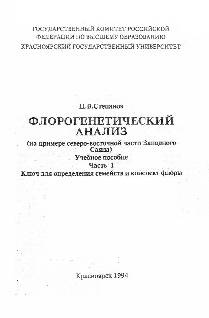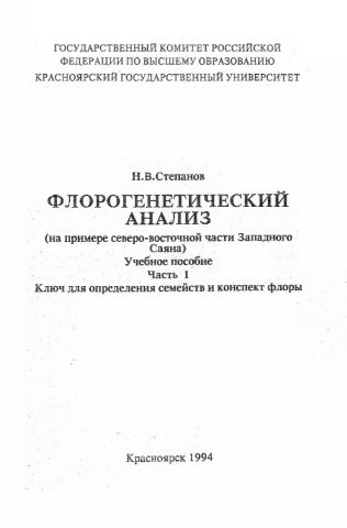 Флорогенетический анализ (на примере северо-восточной части Западного Саяна) : учебное пособие. Ч. 1. Ключ для определения семейств и конспект флоры