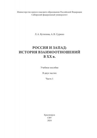 Библиографическое описание:Кутилова, Лариса Александровна. Россия и Запад: история взаимоотношений в ХХ в. : учебное пособие: в 2 частях / Л. А. Кутилова, А. В. Суржко ; рец.: В. Г. Дацышен, Т. Ш. Уметбаев ; Сибирский федеральный университет, Гуманитарный институт. - Электрон. текстовые дан. (582 Кб). - Красноярск : СФУ, 2024 - . - Загл. с титул. экрана. - Электрон. версия печ. публикации . - ISBN 978-5-7638-4899-1. - Текст : электронный. Ч. 1. - 2024 (2024-06-06). - 72 с., 4.5 усл. печ. л. - Библиогр.: с. 69-70. - 100 экз. - ISBN 978-5-7638-5013-0 : Б. ц. - Изд. № 2023-20264