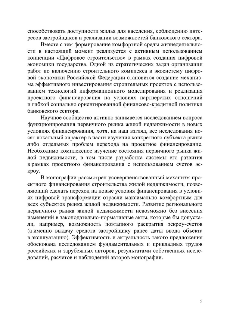 Проектное финансирование жилой недвижимости в условиях цифровой трансформации отрасли : монография