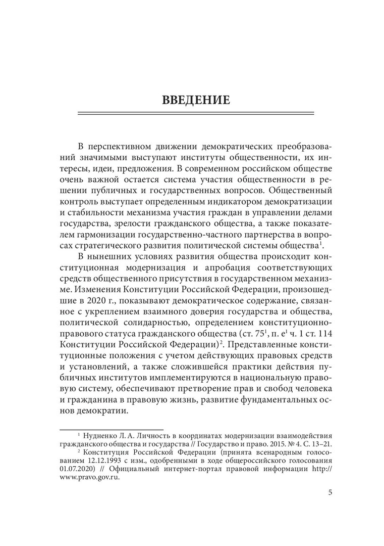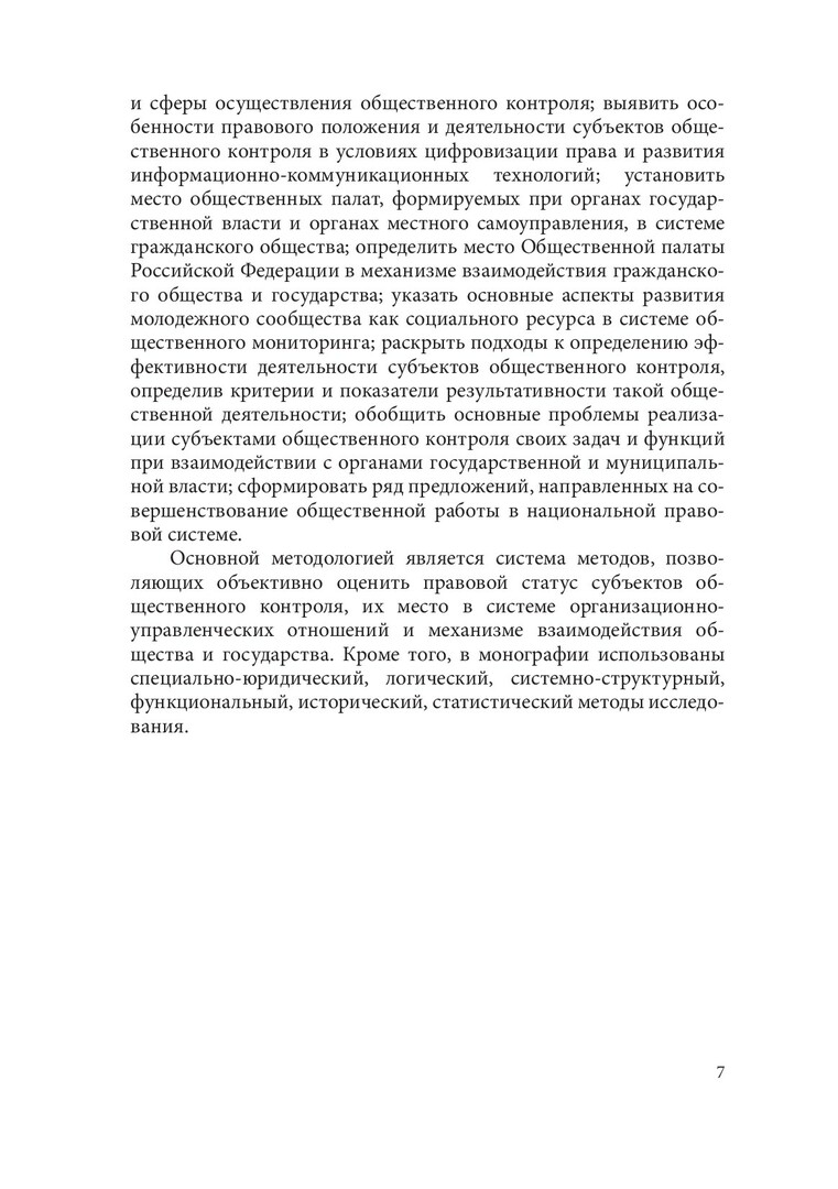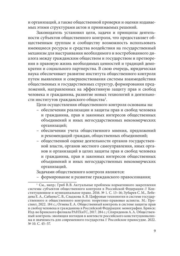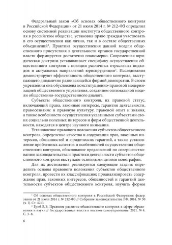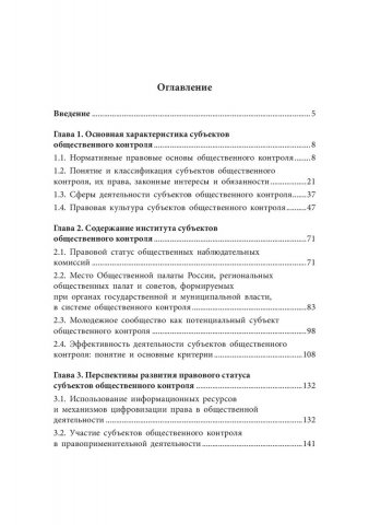 Аннотация: Исследован правовой статус субъектов общественного контроля, установлена нормативная правовая основа их деятельности, а также предложена их классификация, определены права, обязанности, законные интересы. Особое внимание уделено эффективности и гарантиям деятельности основных субъектов общественного контроля, установлены особенности участия молодежного сообщества в публичном управлении. Выявлены недостатки правового регулирования общественного контроля, на основе которых формируются предложения для эффективного развития демократического общественного института. Предназначена для ученых, общественников, специалистов в области общественного контроля, аспирантов, магистрантов и студентов юридических образовательных организаций.