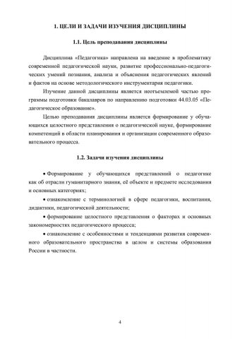 Аннотация: Представлены цели и задачи курса, раскрыты его структура и содержание, описаны планируемые результаты обучения. Перечисляются виды учебных занятий, даны методические рекомендации по их проведению, приведён список рекомендованных для освоения дисциплины источников. Предназначено для преподавателей и слушателей системы высшего и дополнительного профессионального образования, решающих задачи формирования целостного представления о педагогической науке, формирования компетенций в области планирования и организации современного образовательного процесса.