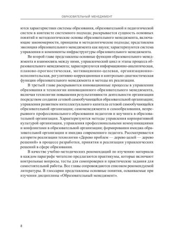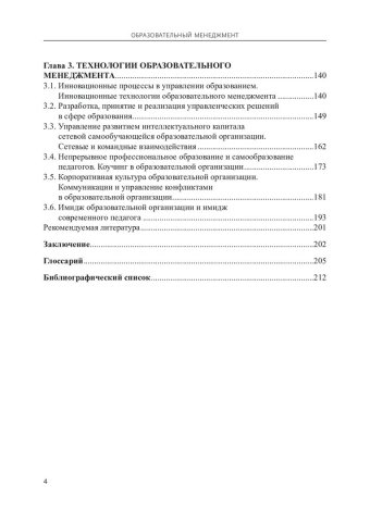 Ключевые слова: управления образовательной организацией, менеджмент в деятельности педагогического работника, образовательный менеджмент, функции образовательного менеджмента, инновационные процессы в управлении образованием, интеллектуальный капитал образовательной организации, непрерывное профессиональное образование, коучинг в образовательной организации, корпоративная культура образовательной организации, имидж образовательной организации