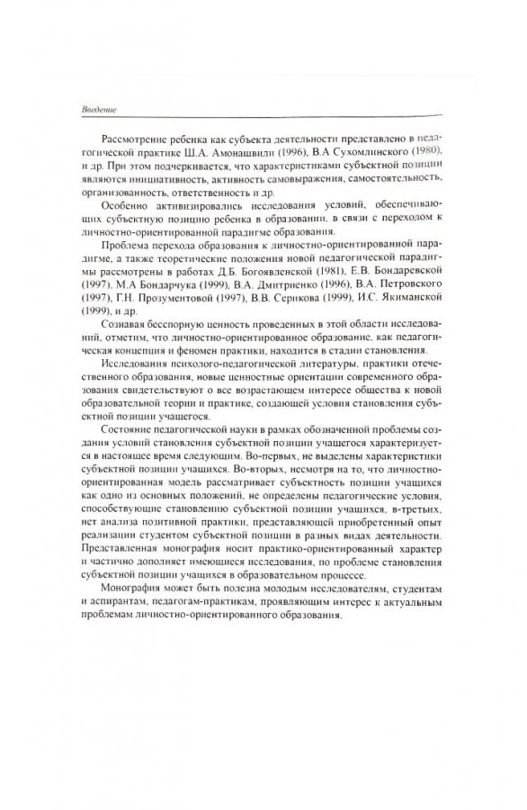 Аннотация:Монография посвящена актуальной проблеме развития субъектной позиции учащихся в образовательном процессе, которая в настоящее время занимает одно из центральных мест в теоретико-прикладных исследованиях педагогической науки. Книга будет полезна научным и практическим работникам, занимающимся проблемами личностно-ориентированного образования.