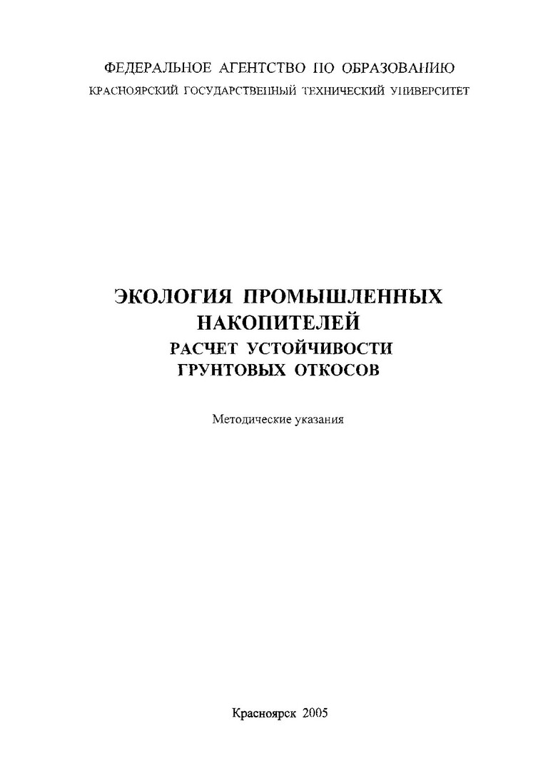 Экология промышленных накопителей. Расчет устойчивости грунтовых откосов : метод. указ. по выполнению лаб. и практ. работ для студентов направления подгот. дипломир. спец. 656600 всех форм обуч.
