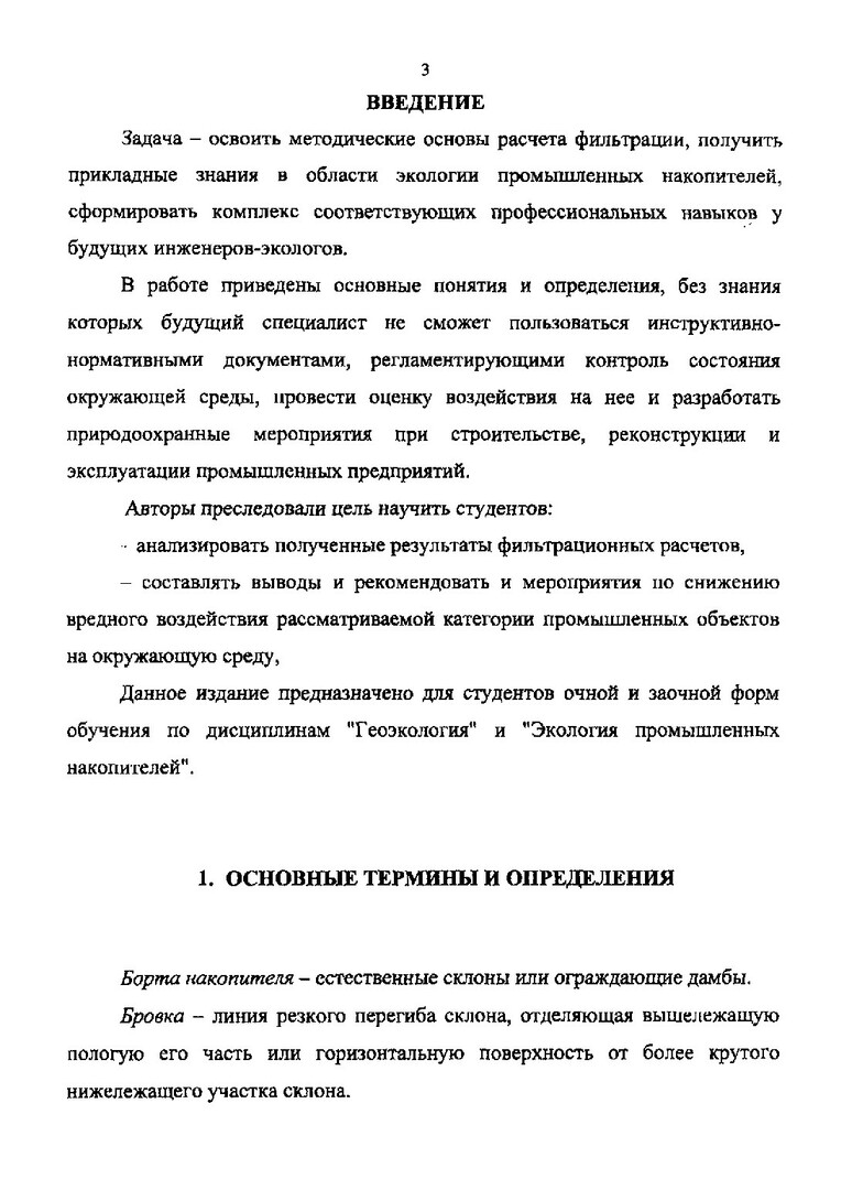Экология промышленных накопителей. Приток воды в карьер. Фильтрация промышленных стоков из накопителя : метод. указ. по курсовому проектированию для студентов направлений подгот. дипломир. спец. 656600 всех форм обучения