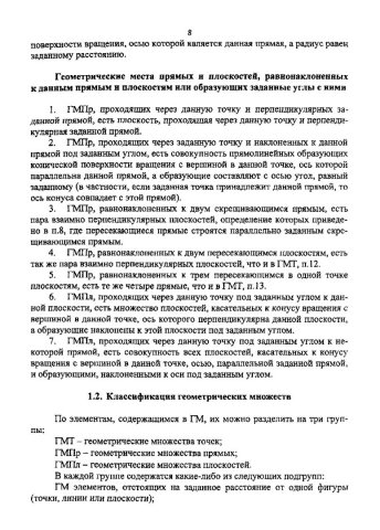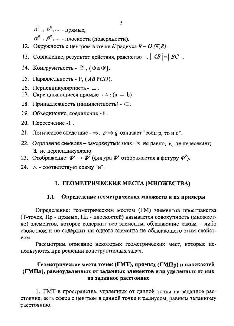 Аннотация:Рассмотрены геометрические множества (ГМ) точек, прямых и плоскостей, дана классификация ГМ, приведены примеры поверхностей, а также примеры решения задач.