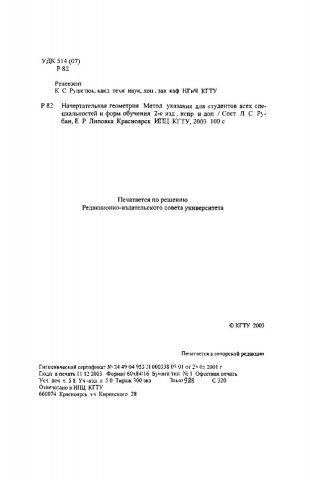 Библиографическое описание:Рубан, Л. С. Начертательная геометрия : метод. указ. для студ. всех спец. и форм обуч. / Л. С. Рубан, Е. Р. Липовка ; Краснояр. гос. техн. ун-т. - Красноярск : ИПЦ КГТУ, 2003. - 100 с. - 11.60 р. - Текст : непосредственный + Текст : электронный.