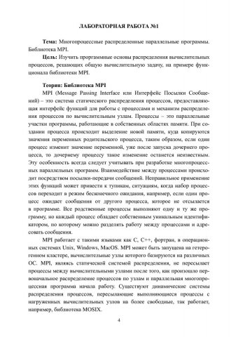 Аннотация: Содержит теоретическую информацию по предмету «Распределенные вычисления». Курс предполагает изучение основных понятий и принципов распределенного программирования, получение навыков разработки многопроцессных распределенных параллельных MPI программ, организации связи между процессами, выполняющимися на одной ЭВМ и на удаленных ЭВМ в сети, а также между контейнеризованными приложениями. Предназначено для студентов магистратуры направления 09.04.01 «Информатика и вычислительная техника», специализированной программы 09.04.01.01 «Высокопроизводительные вычислительные системы».