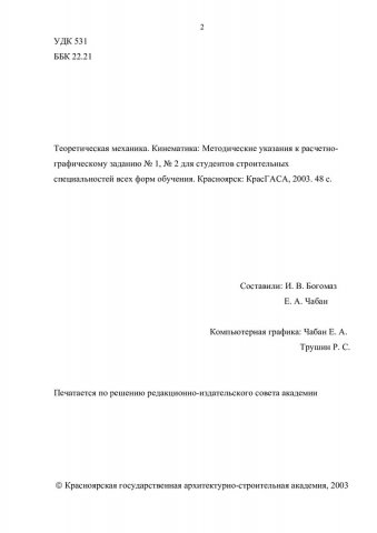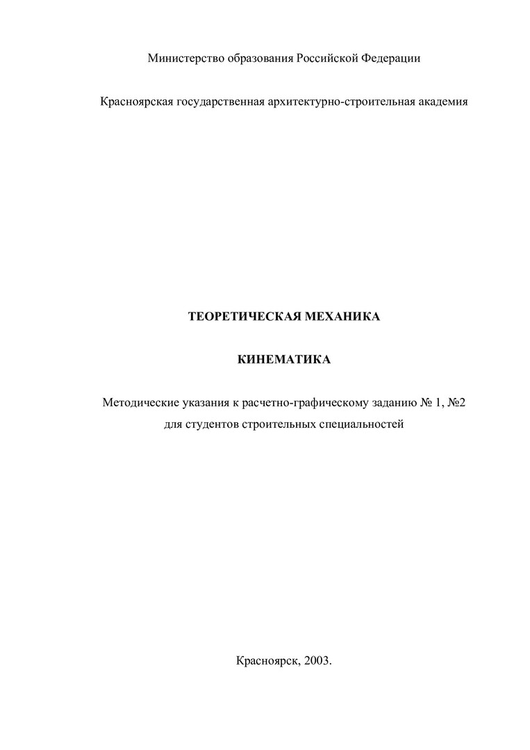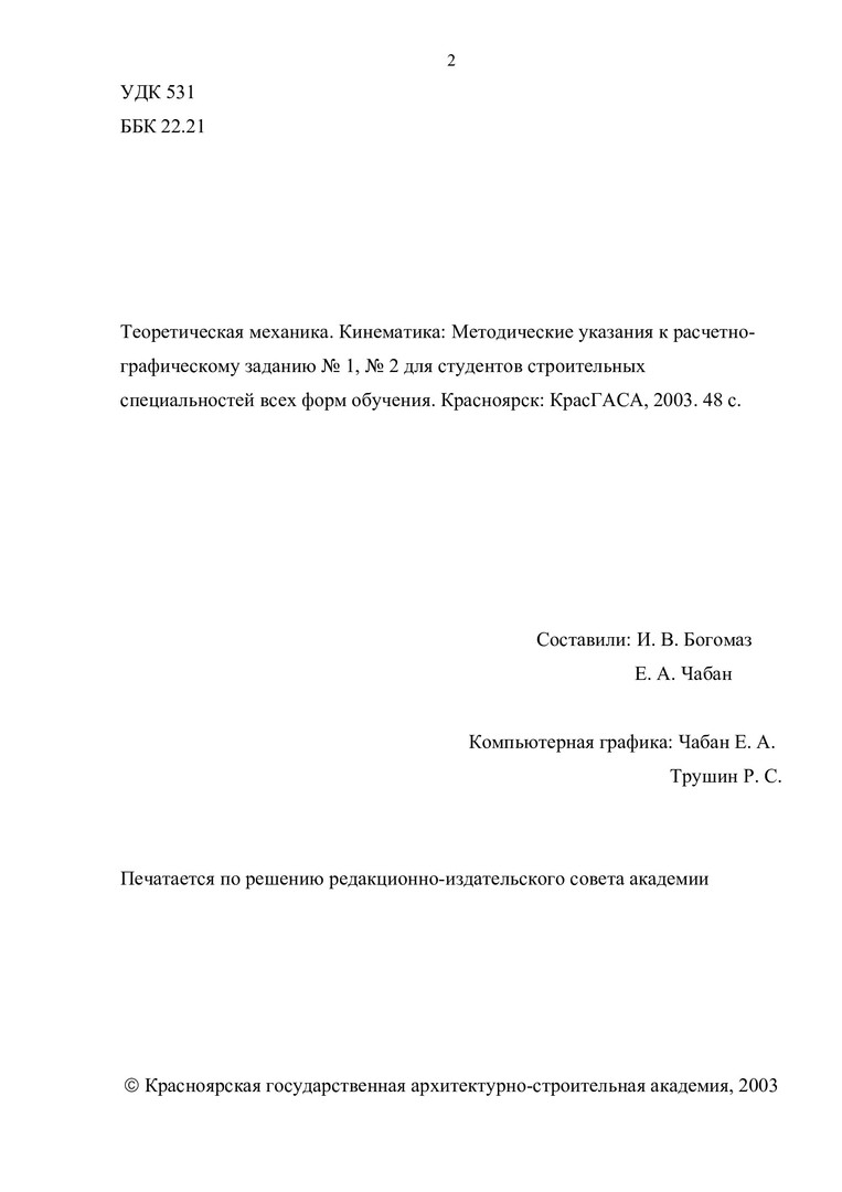 Библиографическое описание:Теоретическая механика. Кинематика / сост.: И. В. Богомаз, Е. А. Чабан. - Электрон. текстовые дан. - Красноярск : КрасГАСА, 2003. - 48 с. : граф., табл. - Загл. с титул. экрана. - Текст : непосредственный + Текст : электронный.