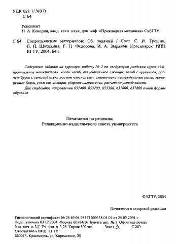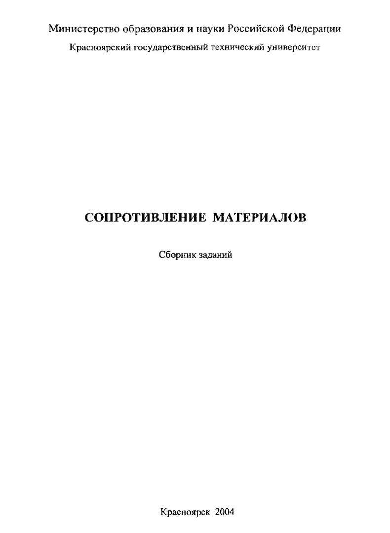 Библиографическое описание: Сопротивление материалов : сб. заданий / С. И. Трошин [и др.] ; Краснояр. гос. техн. ун-т. - Красноярск : ИПЦ КГТУ, 2004. - 64 с. : ил. - Текст : непосредственный + Текст : электронный.