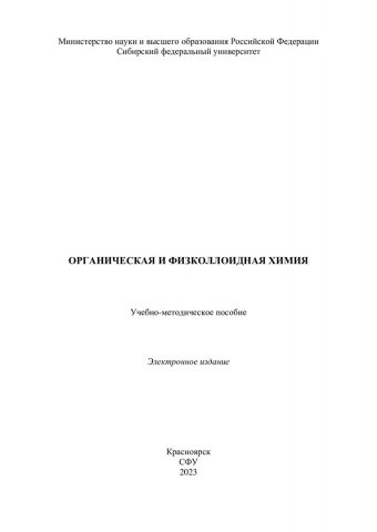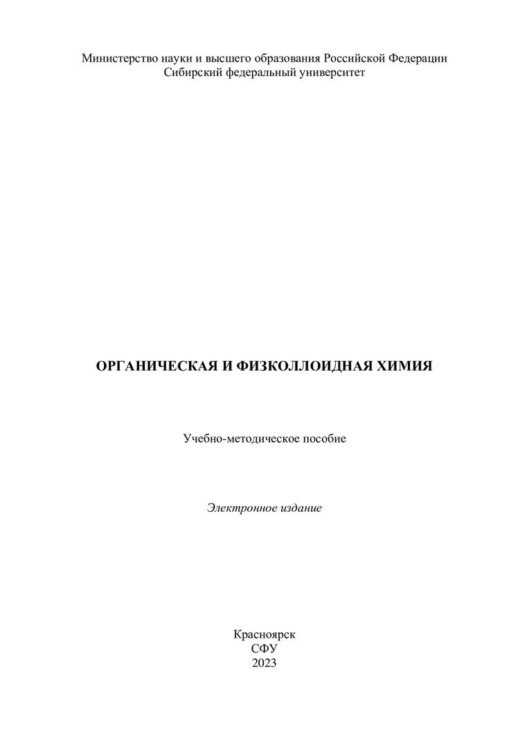 Библиографическое описание: Органическая и физколлоидная химия : учебно-методическое пособие / Сиб. федер. ун-т, Ин-т цветных металлов ; сост.: А. С. Казаченко, А. С. Казаченко, Н. Ю. Васильева. - Электрон. текстовые дан. (pdf, 3,6 Мб). - Красноярск : СФУ, 2023 (2023-06-06). - 162 с. - Загл. с титул. экрана. - Изд. № 2023-19195 : Б. ц. - Текст : электронный.