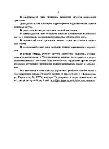 Ключевые слова: автоматическое управление, автоматическое регулирование, гидроприводы, электрогидравлические усилители, гидравлическая техника, устойчивость линейных систем, нелинейные системы, учебные пособия, рекомендовано сибрумц