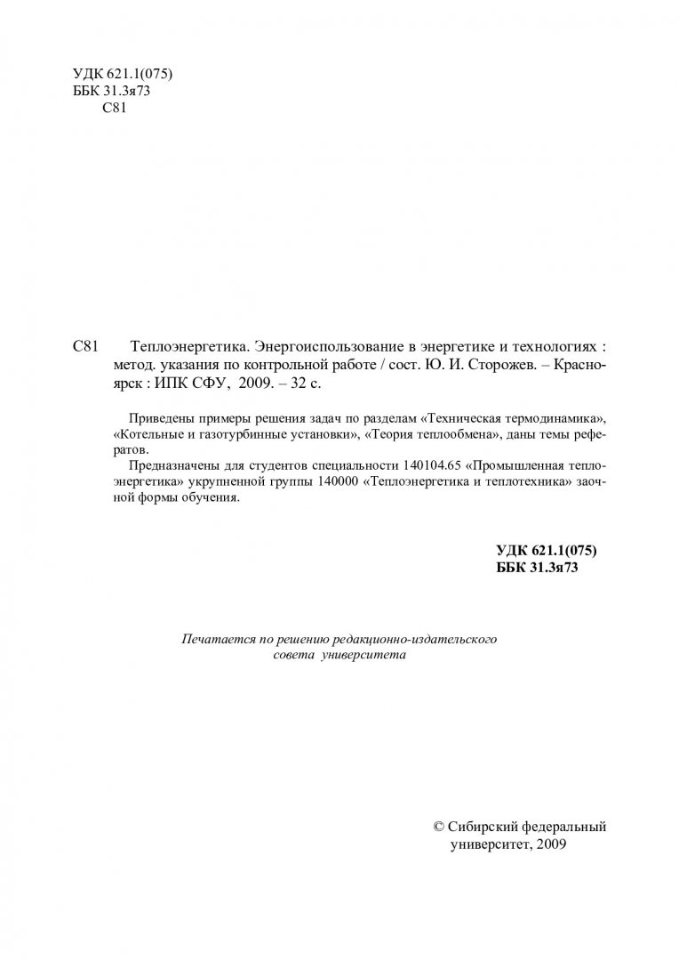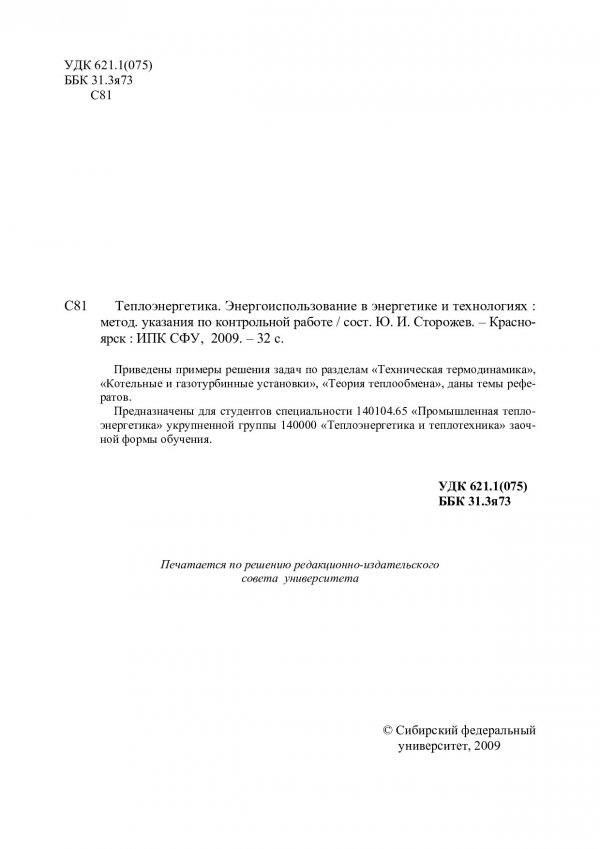 Библиографическое описание:Сторожев, Юрий Иванович. Теплоэнергетика. Энергоиспользование в энергетике и технологиях : метод. указ. к контр. работе / Ю. И. Сторожев ; Сиб. федерал. ун-т. - Красноярск : ИПК СФУ, 2009. - 30 с. - Библиогр.: с. 24. - 100 экз. - Текст : непосредственный + Текст : электронный.