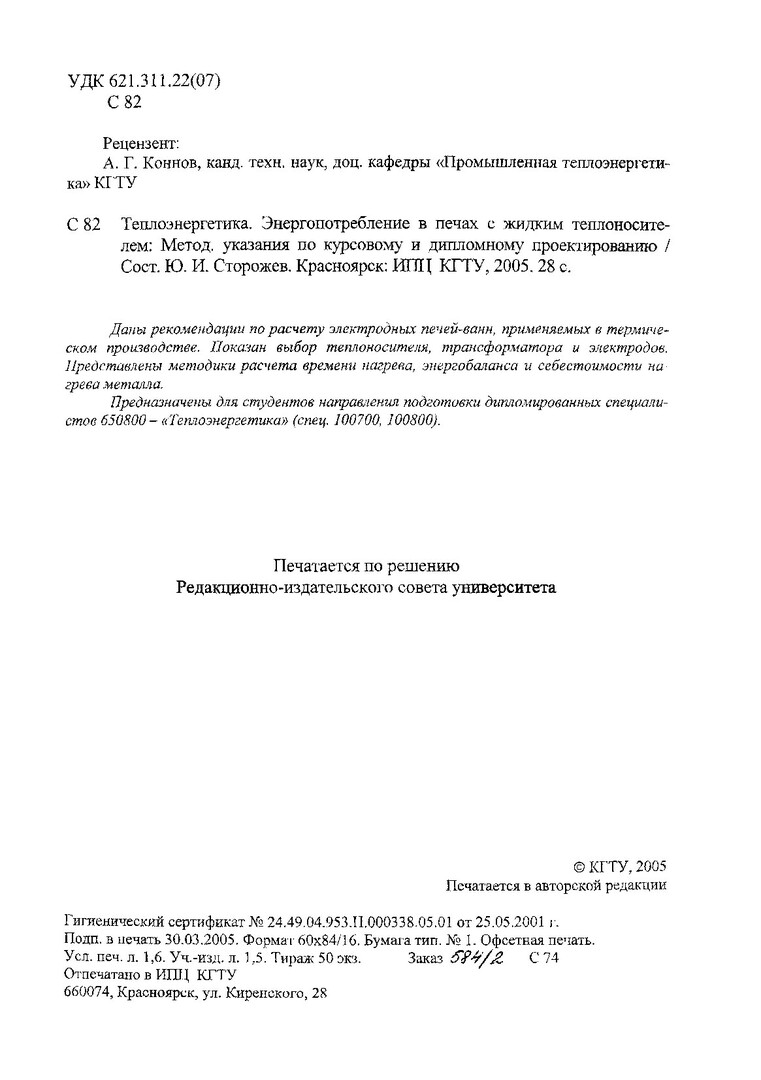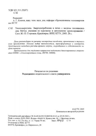Библиографическое описание:Сторожев, Юрий Иванович. Теплоэнергетика. Энергопотребление в печах с жидким теплоносителем : метод. указ. по курсовому и диплом. проектированию / Ю. И. Сторожев ; Краснояр. гос. техн. ун-т. - Красноярск : ИПЦ КГТУ, 2005. - 28 с. : табл. - (Учеб.- метод. лит.)