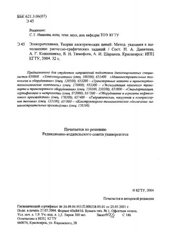 Электротехника. Теория электрических цепей : метод. указ. к выполн. расч.- граф. заданий / Н. А. Даничева [и др.] ; Краснояр. гос. техн. ун-т. - Красноярск : ИПЦ КГТУ, 2004. - 32 с. - (Учеб.- метод. лит.). - 19.00 р. - Текст : непосредственный + Текст : электронный.