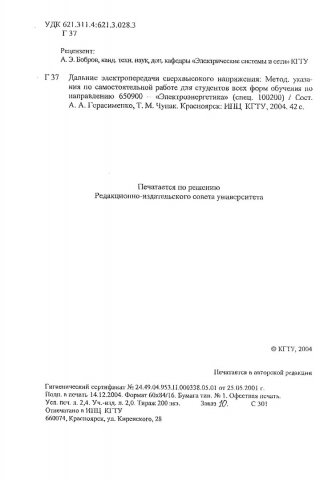 Библиографическое описание:Герасименко, Алексей Алексеевич. Дальние электропередачи сверхвысокого напряжения : метод. указ. по самост. работе для студентов всех форм обучения по напр. 650900 - "Электроэнергетика" / А. А. Герасименко, Т. М. Чупак ; Краснояр. гос. техн. ун-т. - Электронные текст. дан.( 2,27 Мб). - Красноярск : ИПЦ КГТУ, 2004. - 43 с. - Загл. с титул. экрана. - Текст : непосредственный + Текст : электронный.