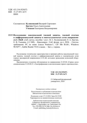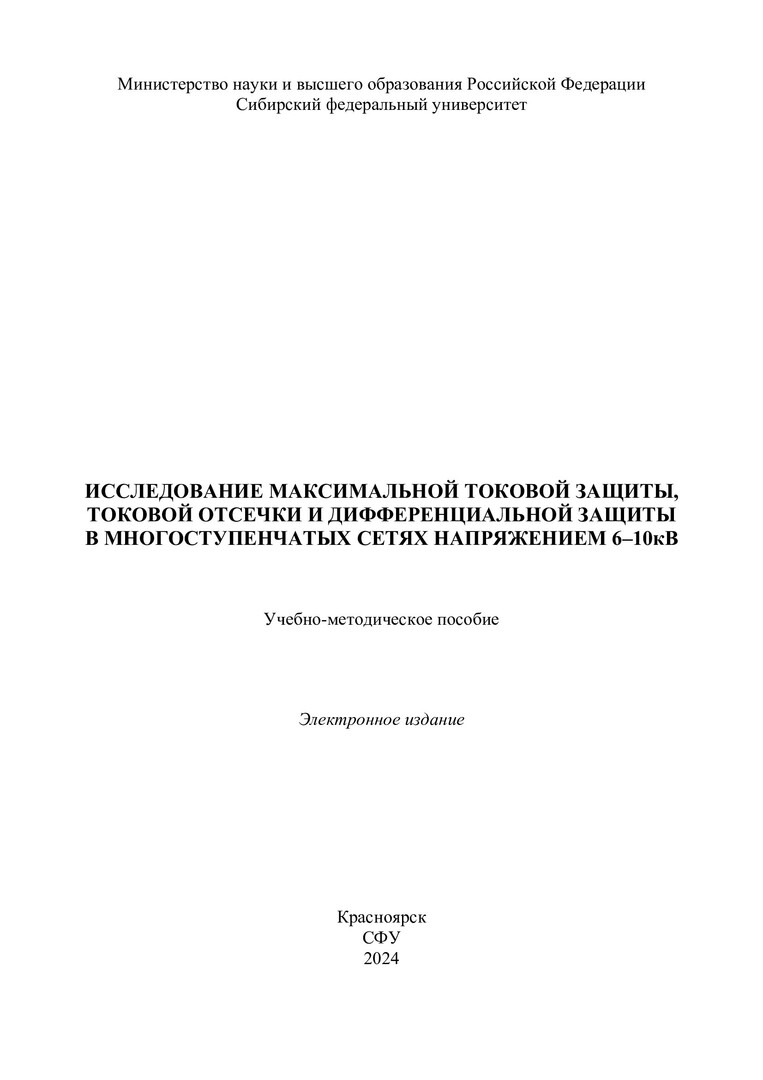 Библиографическое описание:Исследование максимальной токовой защиты, токовой отсечки и дифференциальной защиты в многоступенчатых сетях напряжением 6-10кВ : учебно-методическое пособие / Сиб. федер. ун-т, Ин-т цветных металлов ; сост.: В. С. Куликовский, О. А. Кручек, Е. В. Умецкая. - Электрон. текстовые дан. (pdf, 1,6 Мб). - Красноярск : СФУ, 2024 (2024-12-27). - 55 с. - Загл. с титул. экрана. - Изд. № 2024-23188 : Б. ц. - Текст : электронный.