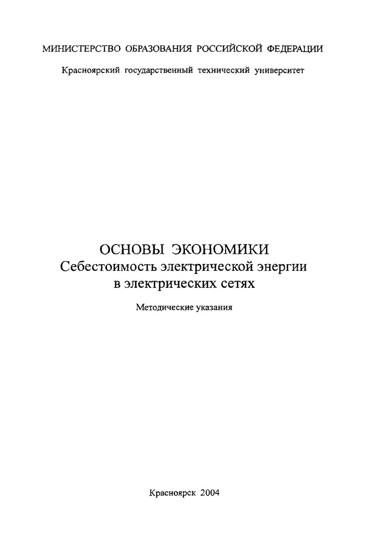 Основы экономики. Себестоимость электрической энергии в электрических сетях : метод. указ. для студентов напр. подг. дипломир. спец. 650900- "Электроэнергетика" (спец. 100200, 210400)