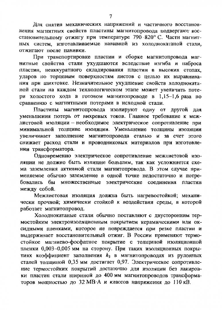 Аннотация: Приведены конструктивные схемы магнитопроводов силовых трансформаторов. Изложены свойства, способы обработки и изоляции электротехнических сталей, применяемых для изготовления магнитопроводов. Рассмотрены конструкции магнитопроводов, устройств продольной и поперечной прессовки магнитопроводов, прессовки обмоток, подъема и крепления активной части трансформатора в баке. Приведены соотношения для упрощенного расчета деталей этих устройств и необходимые справочные данные.