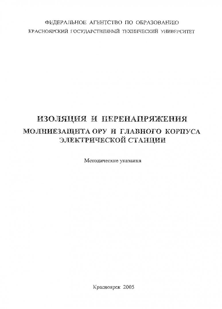 Библиографическое описание:Синенко, Людмила Соломоновна. Изоляция и перенапряжения. Молниезащита ОРУ и главного корпуса электрической станции : метод. указ. по курс. и дипломн. проектированию / Л. С. Синенко, С. А. Тимофеев ; Краснояр. гос. техн. ун-т. - Красноярск : ИПЦ КГТУ, 2005. - 20 с. + Эл. текст. дан.(1,59 Мб). - Загл. с титул. экрана. - Текст : непосредственный + Текст : электронный.