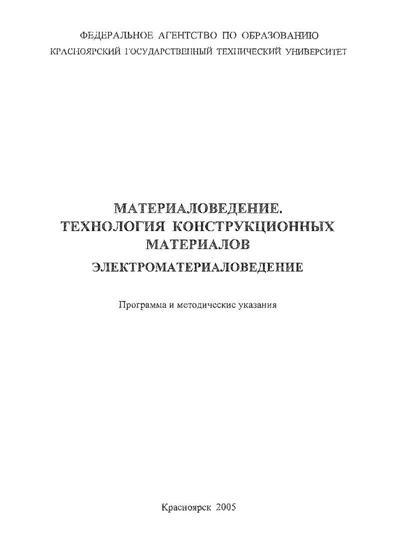 Материаловедение. Технология конструкционных материалов. Электроматериаловедение : программа и метод. указ. для студентов укрупн. гр. напр. подг. спец. 140000 заоч. формы обучения