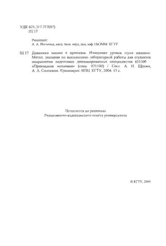 Библиографическое описание:Щепин, Александр Николаевич. Динамика машин и приводов. Измерение уровня шума машины : методические указания по выполн. лаб. работы для студентов напр. подг. дипломир. спец. 651500 / А. Н. Щепин, А. А. Соломкин ; Краснояр. гос. техн. ун-т. - Красноярск : ИПЦ КГТУ, 2004. - 15 с. - 3.00 р.