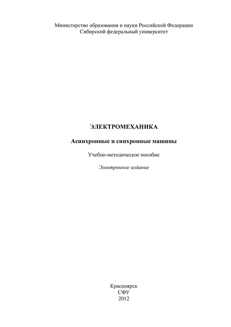Библиографическое описание:Электромеханика. Асинхронные и синхронные машины : учеб.-метод. пособие [для студентов напр. 140400 «Энергетика и электротехника» заоч. формы обучения] / Сиб. федерал. ун-т ; сост.: Л. Ф. Силин, Н. Е. Полошков . - Электрон. текстовые дан. (PDF, 1,5 Мб). - Красноярск : СФУ, 2012. - Загл. с титул. экрана. - Библиогр.: с. 41. - Текст : электронный.