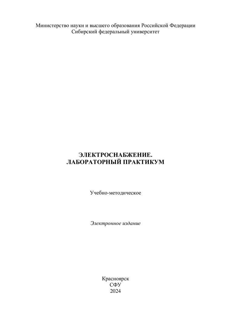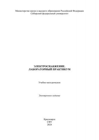 Библиографическое описание: Электроснабжение. Лабораторный практикум : учебно-методическое пособие / Сиб. федер. ун-т, Политехн. ин-т ; сост.: Р. А. Петухов, Л. С. Синенко, Е. Ю. Сизганова. - Электрон. текстовые дан. (pdf, 1,7 Мб). - Красноярск : СФУ, 2024 (2024-04-22). - 43 с. - Загл. с титул. экрана. - Изд. № 2024-21570 : Б. ц. - Текст : электронный.